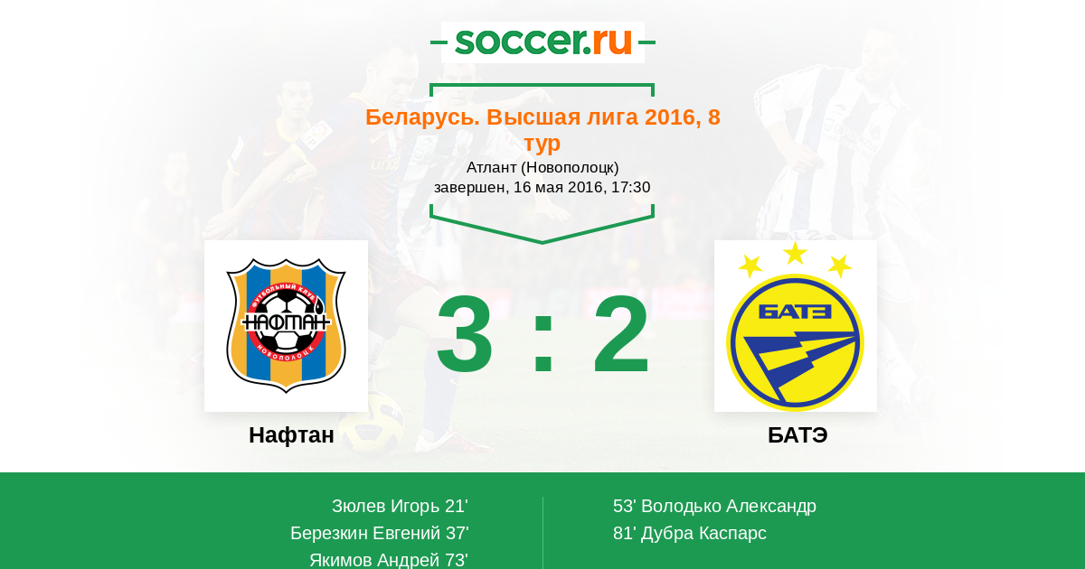 Беларусь. Высшая лига 26.05.2014 БАТЭ Логотип футбольный клуб БАТЭ (Борисов) 3:1 Логотип футбольный клуб Нафтан (Новополоцк) Нафтан