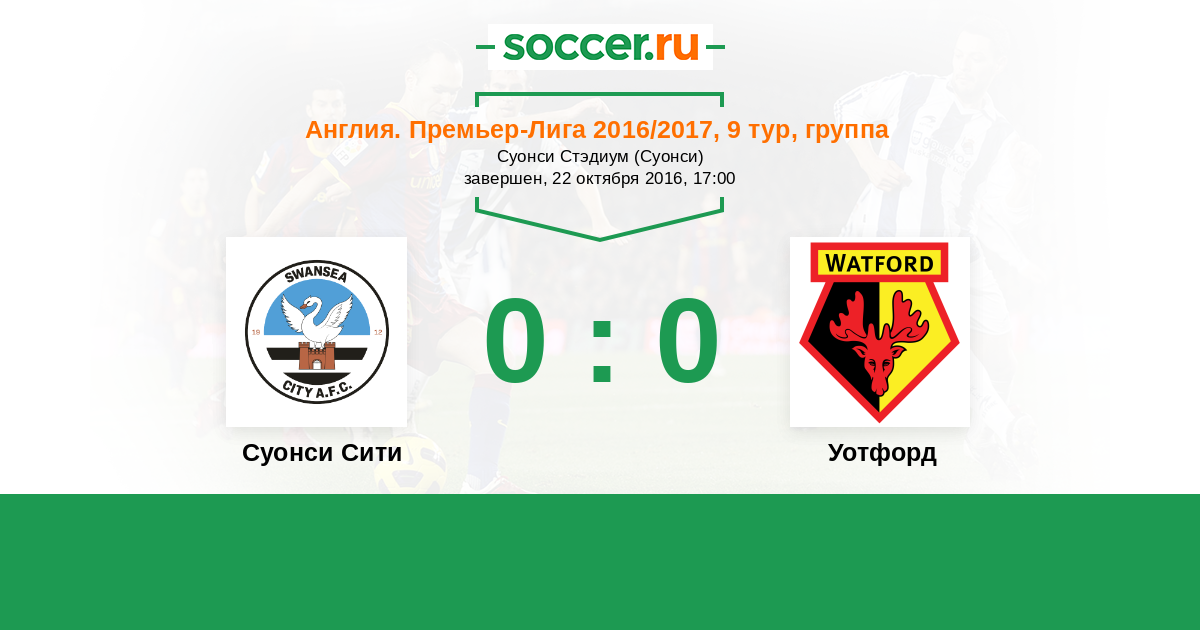 Англия. Премьер-Лига 23.09.2017 Суонси Сити Логотип футбольный клуб Суонси Сити 1:2 Логотип футбольный клуб Уотфорд Уотфорд