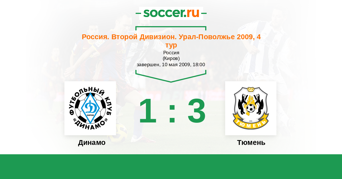 Россия. Вторая лига. Группа 4 19.08.2009 Тюмень Логотип футбольный клуб Тюмень 4:0 Логотип футбольный клуб Динамо Киров Динамо Киров