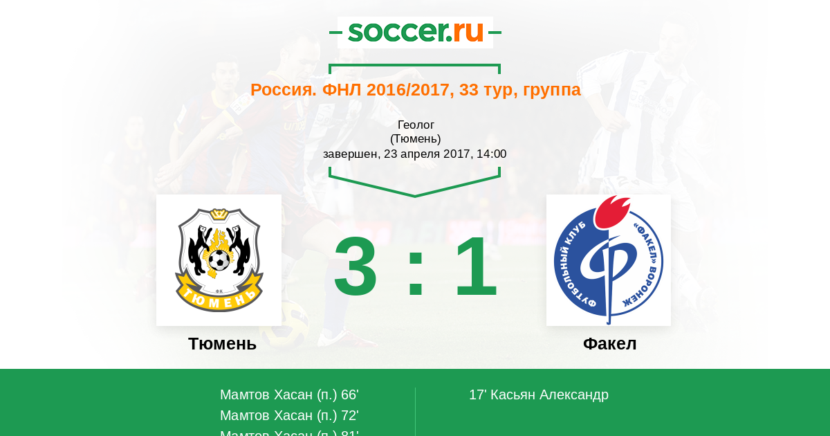 Матчи Россия. ФНЛ 2016/2017