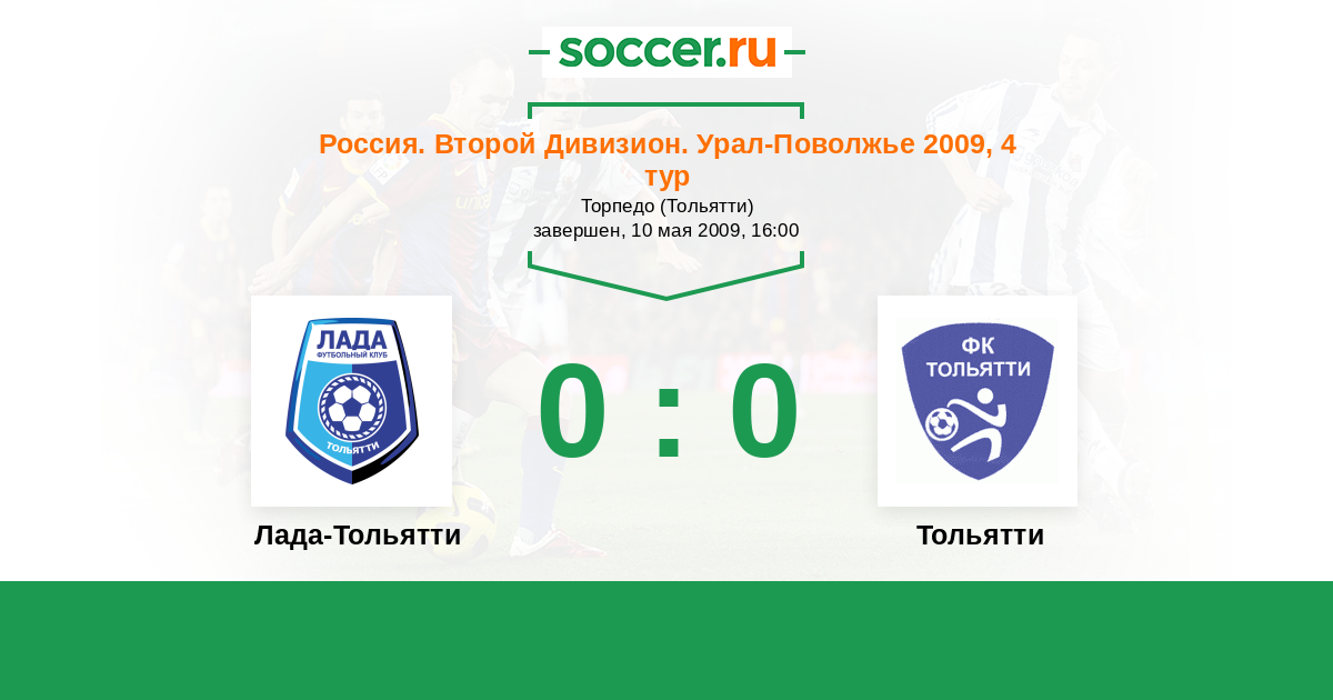 Россия. Вторая лига. Группа 4 19.08.2009 Тольятти Логотип футбольный клуб Тольятти 0:1   Лада-Тольятти
