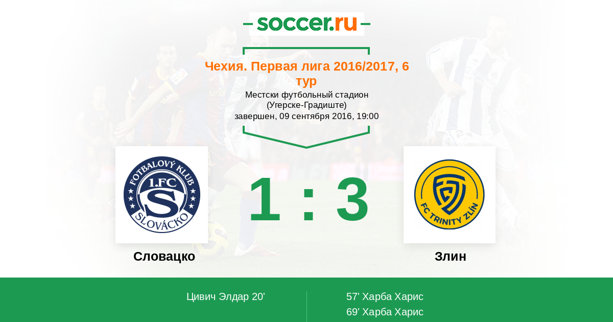Чехия. Кубок 06.09.2014 Злин Логотип футбольный клуб Злин 0:4 Логотип футбольный клуб Словацко (Угерске-Градиште) Словацко