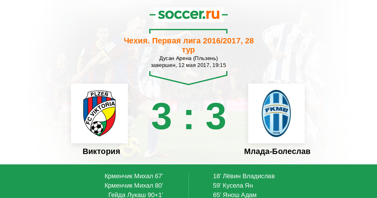 Чехия. Первая Лига 07.05.2011 Виктория Логотип футбольный клуб Виктория (Пльзень) 3:1 Логотип футбольный клуб Млада-Болеслав Млада-Болеслав