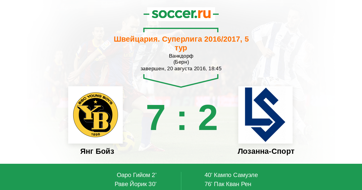 Швейцария. Суперлига 06.08.2017 Янг Бойз Логотип футбольный клуб Янг Бойз (Берн) 3:0 Логотип футбольный клуб Лозанна-Спорт Лозанна-Спорт