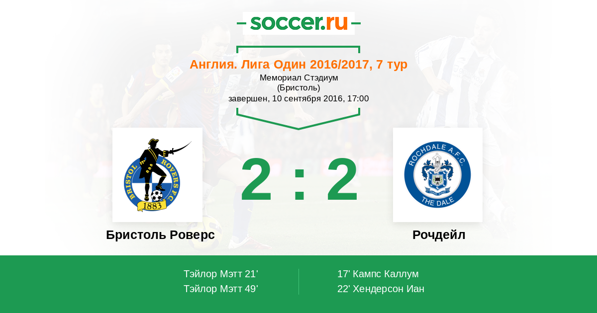 Англия. Первая Футбольная Лига 04.02.2017 Рочдейл Логотип футбольный клуб Рочдейл 0:0 Логотип футбольный клуб Бристоль Роверс Бристоль Роверс