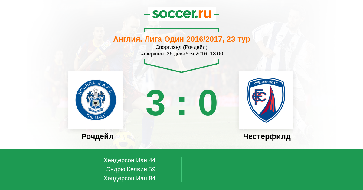 Англия. Первая Футбольная Лига 25.03.2017 Честерфилд Логотип футбольный клуб Честерфилд 1:3 Логотип футбольный клуб Рочдейл Рочдейл