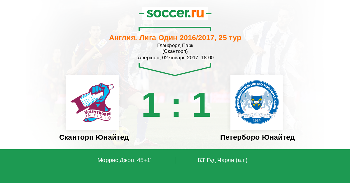 Англия. Первая Футбольная Лига 13.02.2018 Петерборо Юнайтед Логотип футбольный клуб Петерборо Юнайтед 2:2 Логотип футбольный клуб Сканторп Юнайтед Сканторп Юнайтед
