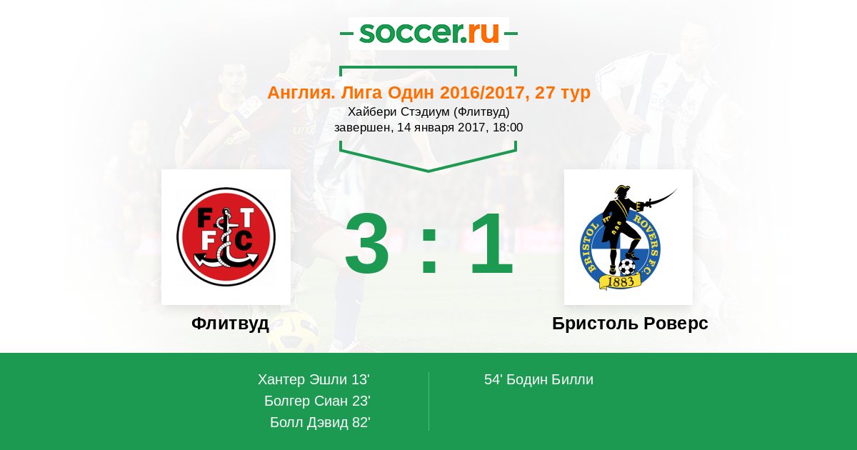 Англия. Первая Футбольная Лига 02.04.2018 Флитвуд Логотип футбольный клуб Флитвуд 2:0 Логотип футбольный клуб Бристоль Роверс Бристоль Роверс