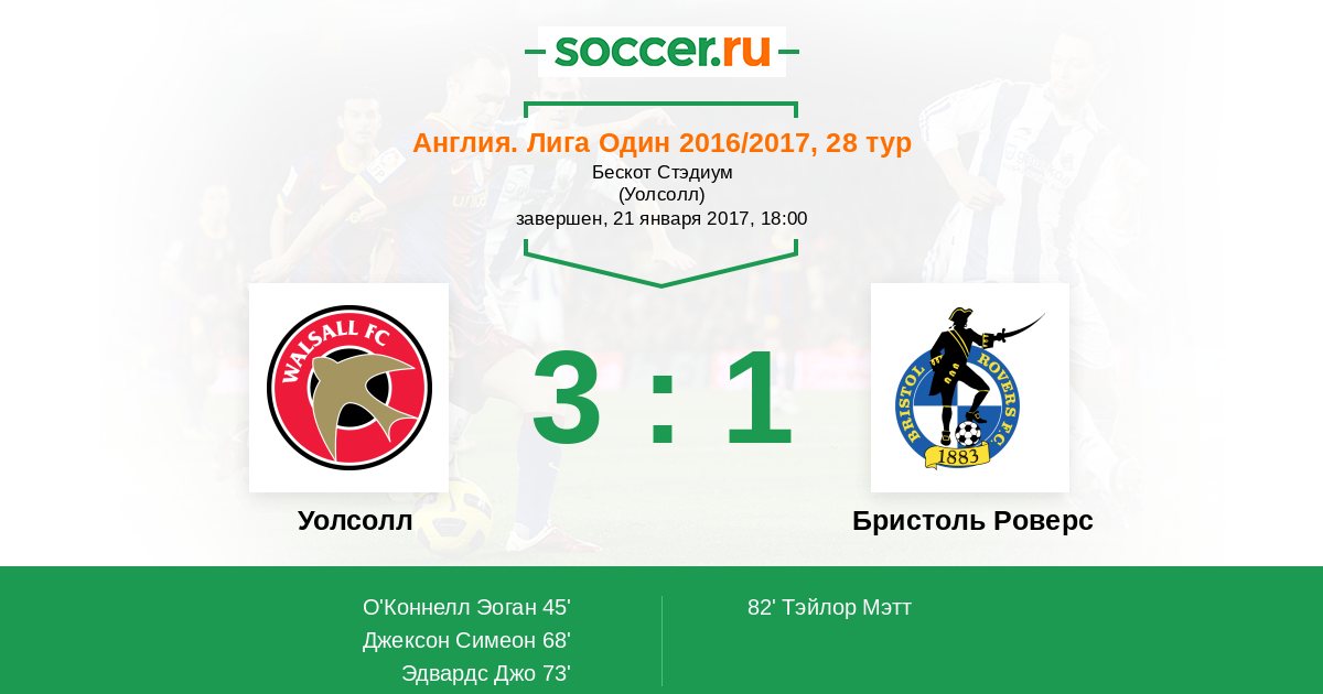 Англия. Первая Футбольная Лига 13.09.2016 Бристоль Роверс Логотип футбольный клуб Бристоль Роверс 1:1 Логотип футбольный клуб Уолсолл Уолсолл