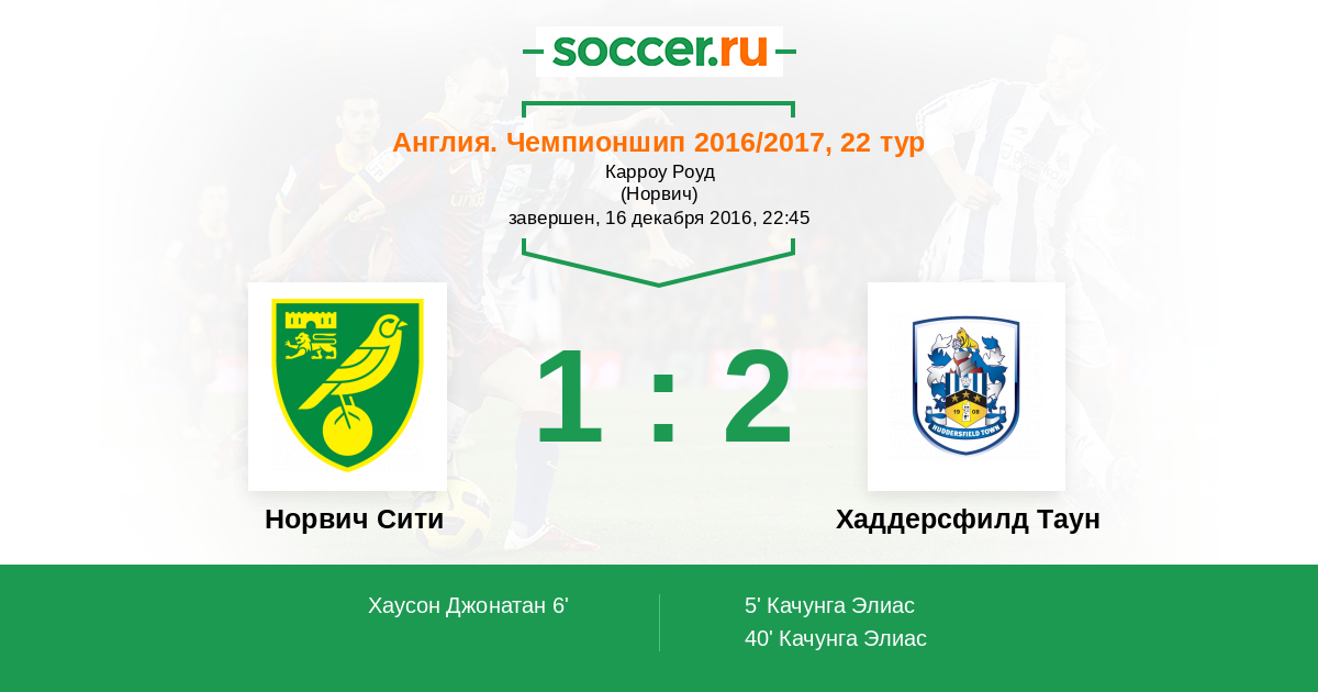 Англия. Чемпионшип 05.04.2017 Хаддерсфилд Таун Логотип футбольный клуб Хаддерсфилд Таун 3:0 Логотип футбольный клуб Норвич Сити Норвич Сити