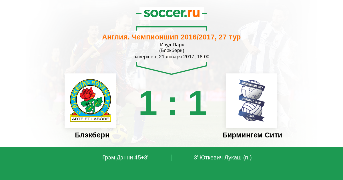 Англия. Чемпионшип 01.10.2016 Бирмингем Сити Логотип футбольный клуб Бирмингем Сити 1:0 Логотип футбольный клуб Блэкберн Блэкберн
