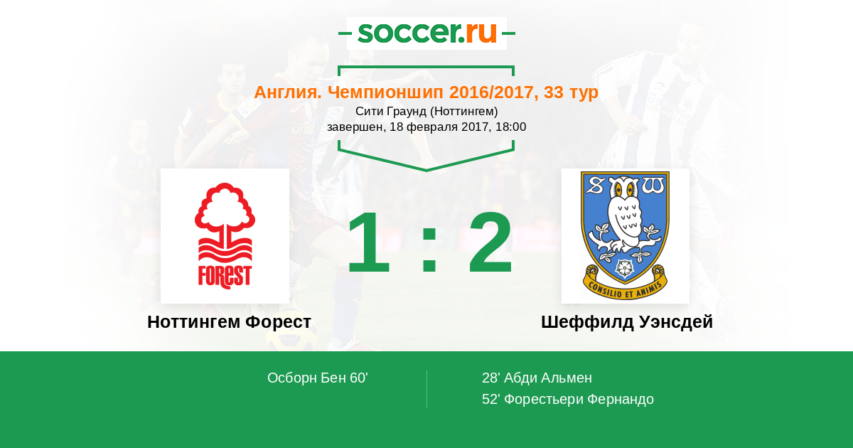 Англия. Чемпионшип 12.03.2016 Ноттингем Форест Логотип футбольный клуб Ноттингем Форест 0:3 Логотип футбольный клуб Шеффилд Уэнсдей Шеффилд Уэнсдей