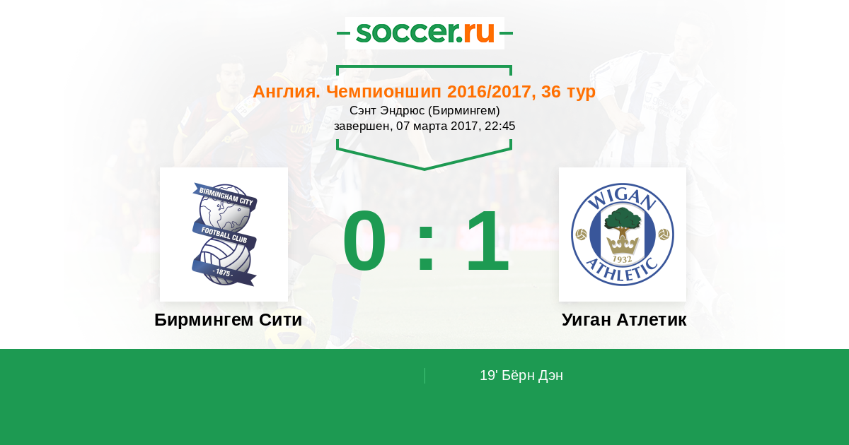 Англия. Чемпионшип 16.08.2016 Уиган Атлетик Логотип футбольный клуб Уиган Атлетик 1:1 Логотип футбольный клуб Бирмингем Сити Бирмингем Сити