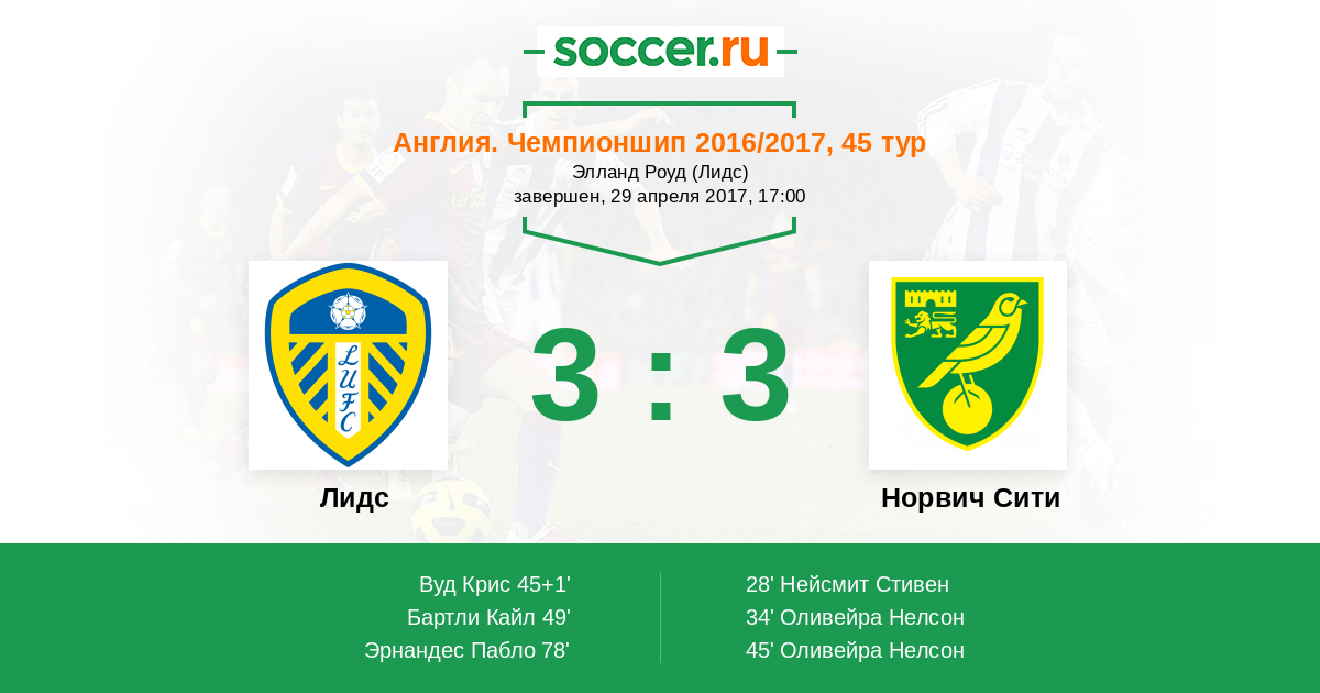 Англия. Чемпионшип 28.04.2018 Норвич Сити Логотип футбольный клуб Норвич Сити 2:1 Логотип футбольный клуб Лидс Лидс