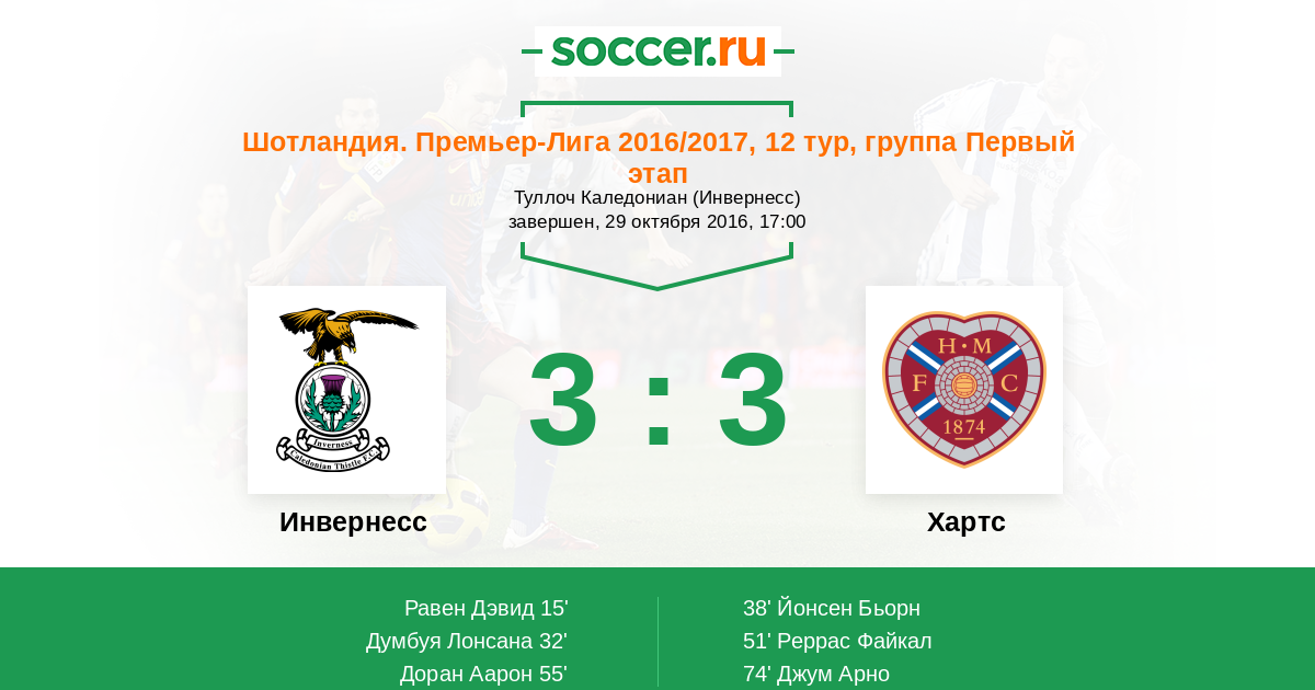 Шотландия. Премьер-Лига 18.02.2017 Хартс Логотип футбольный клуб Хартс (Эдинбург) 1:1 Логотип футбольный клуб Инвернесс Инвернесс