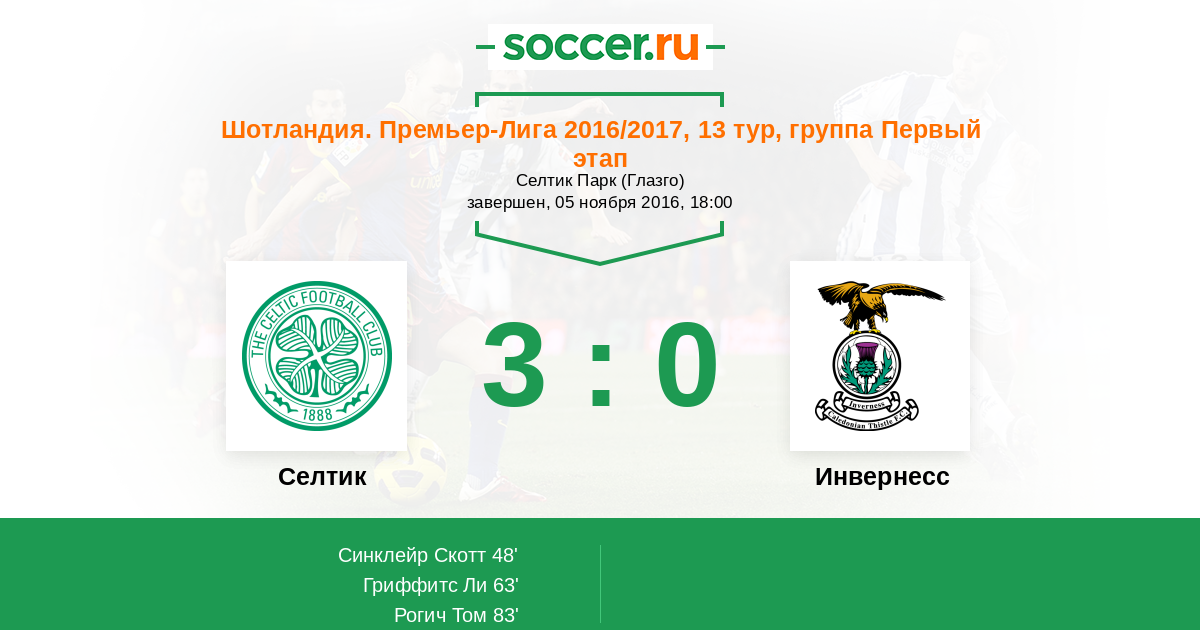 Шотландия. Премьер-Лига 20.02.2016 Селтик Логотип футбольный клуб Селтик (Глазго) 3:0 Логотип футбольный клуб Инвернесс Инвернесс