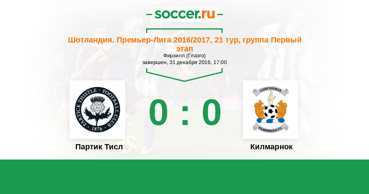 Шотландия. Премьер-Лига 02.04.2016 Партик Тисл Логотип футбольный клуб Партик Тисл (Глазго) 0:0 Логотип футбольный клуб Килмарнок Килмарнок