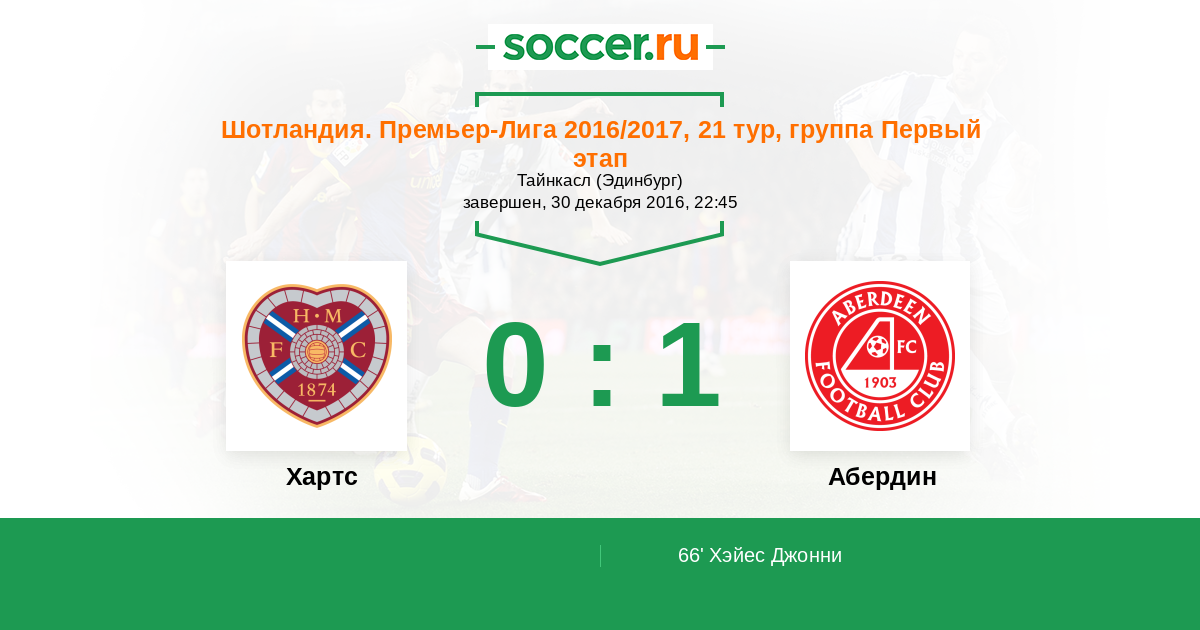 Шотландия. Премьер-Лига 18.03.2017 Абердин Логотип футбольный клуб Абердин 2:0 Логотип футбольный клуб Хартс (Эдинбург) Хартс