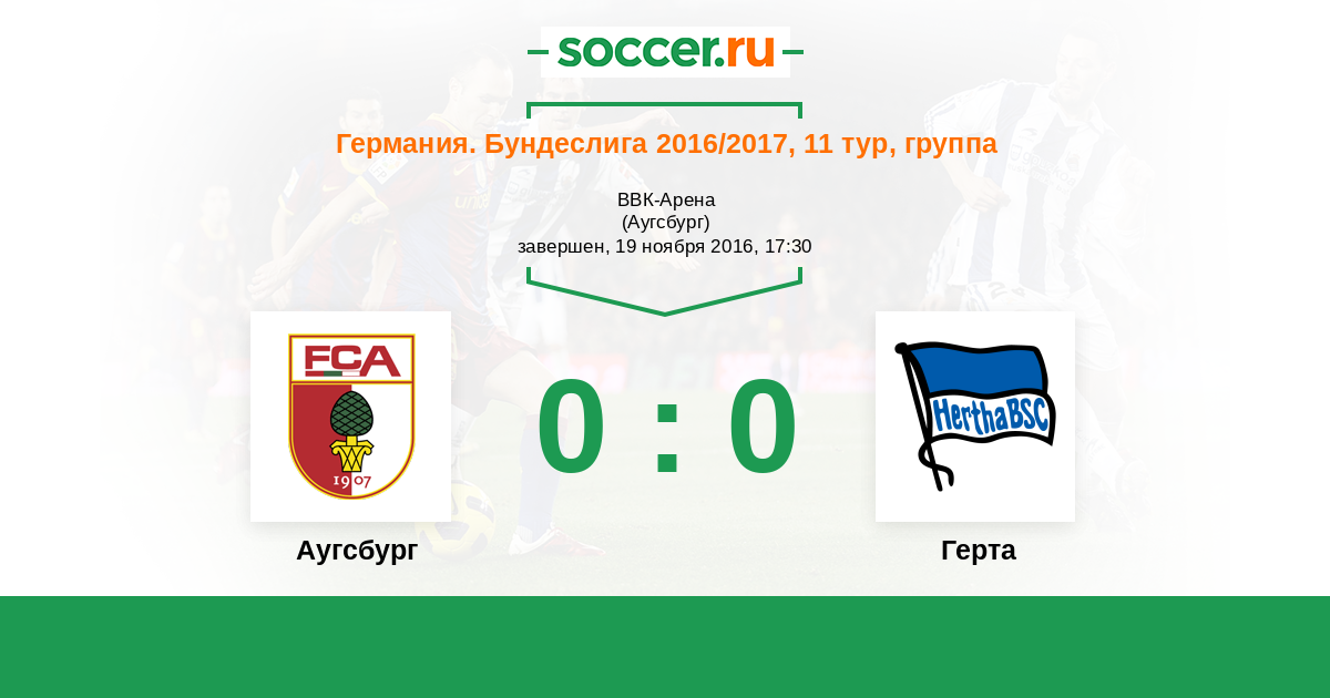Германия. Бундеслига 09.04.2017 Герта Логотип футбольный клуб Герта (Берлин) 2:0 Логотип футбольный клуб Аугсбург Аугсбург