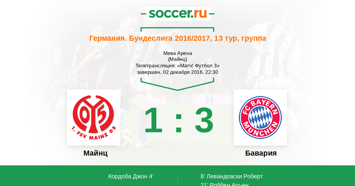 Германия. Бундеслига 02.03.2016 Бавария Логотип футбольный клуб Бавария (Мюнхен) 1:2 Логотип футбольный клуб Майнц Майнц