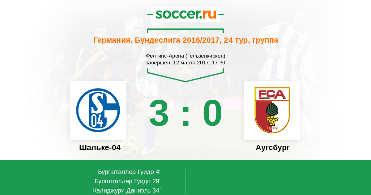 Германия. Бундеслига 13.12.2017 Шальке-04 Логотип футбольный клуб Шальке-04 (Гельзенкирхен) 3:2 Логотип футбольный клуб Аугсбург Аугсбург