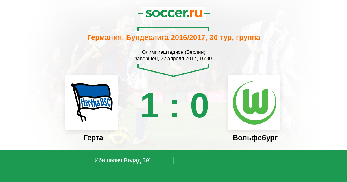Германия. Бундеслига 20.02.2016 Герта Логотип футбольный клуб Герта (Берлин) 1:1 Логотип футбольный клуб Вольфсбург Вольфсбург