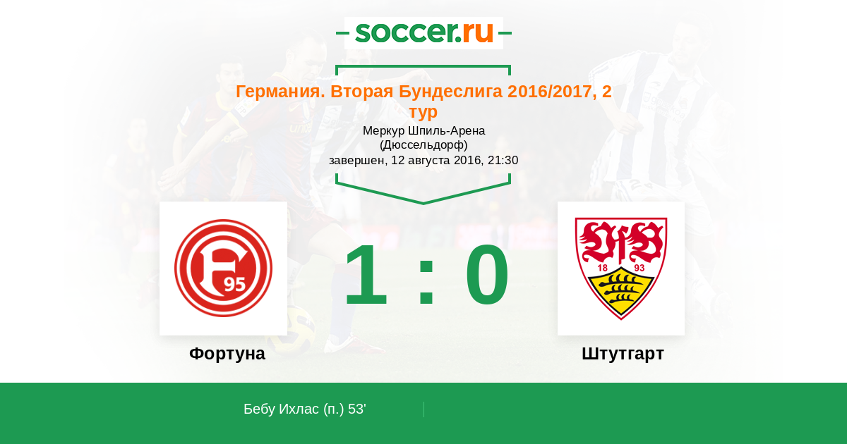 Германия. Бундеслига 15.09.2012 Штутгарт Логотип футбольный клуб Штутгарт 0:0 Логотип футбольный клуб Фортуна (Дюссельдорф) Фортуна