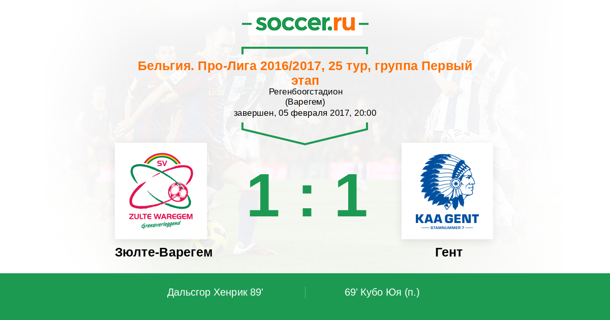 Бельгия. Про-Лига 25.04.2017 Зюлте-Варегем Логотип футбольный клуб Зюлте-Варегем 0:2 Логотип футбольный клуб Гент Гент