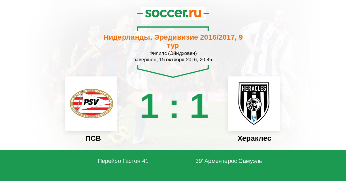 Нидерланды. Эредивизи 19.09.2015 Хераклес Логотип футбольный клуб Хераклес (Алмело) 2:1 Логотип футбольный клуб ПСВ (Эйндховен) ПСВ