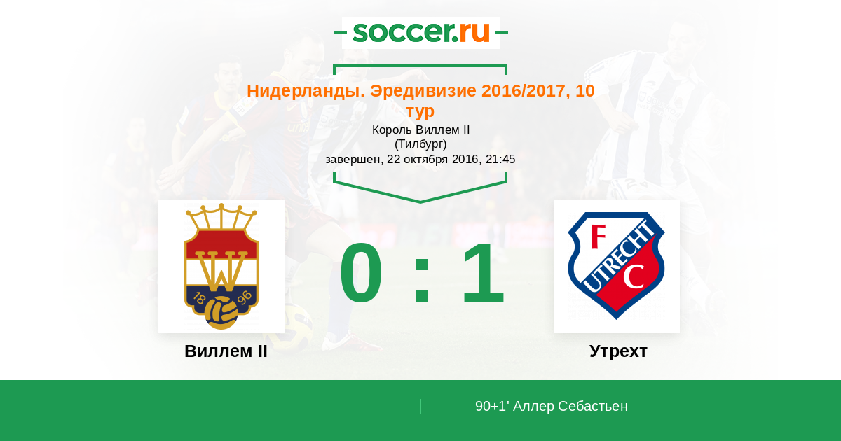 Нидерланды. Эредивизи 31.10.2021 Утрехт Логотип футбольный клуб Утрехт 5:1 Логотип футбольный клуб Виллем II (Тилбург) Виллем II