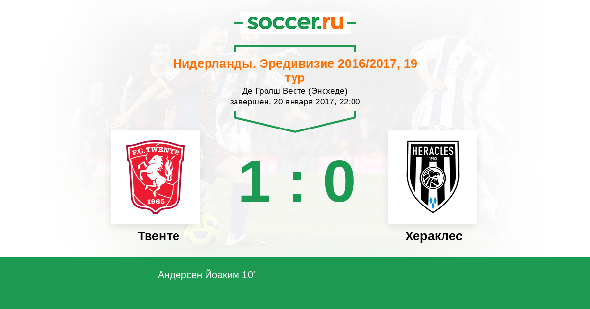 Нидерланды. Эредивизи 23.01.2015 Твенте Логотип футбольный клуб Твенте (Энсхеде) 2:0 Логотип футбольный клуб Хераклес (Алмело) Хераклес