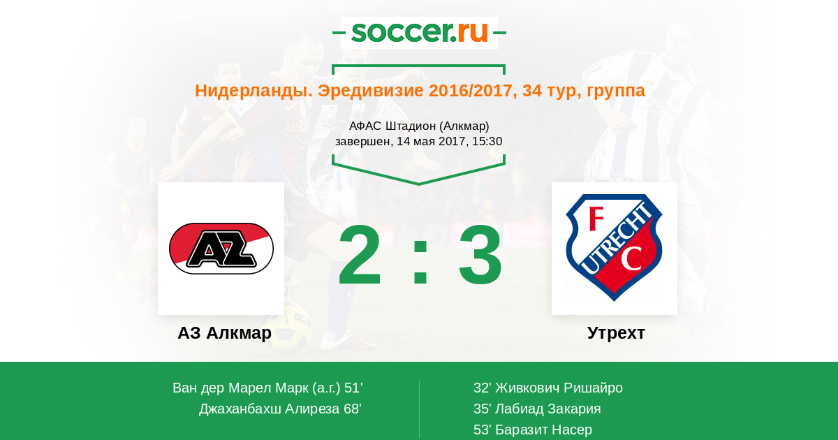 Нидерланды. Эредивизи 08.05.2016 Утрехт Логотип футбольный клуб Утрехт 1:3 Логотип футбольный клуб АЗ Алкмар АЗ Алкмар