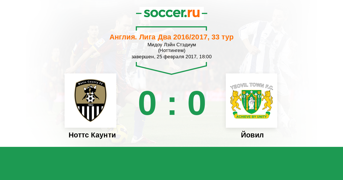 Англия. Вторая Футбольная Лига 12.03.2016 Йовил Логотип футбольный клуб Йовил 1:0 Логотип футбольный клуб Ноттс Каунти (Ноттингем) Ноттс Каунти