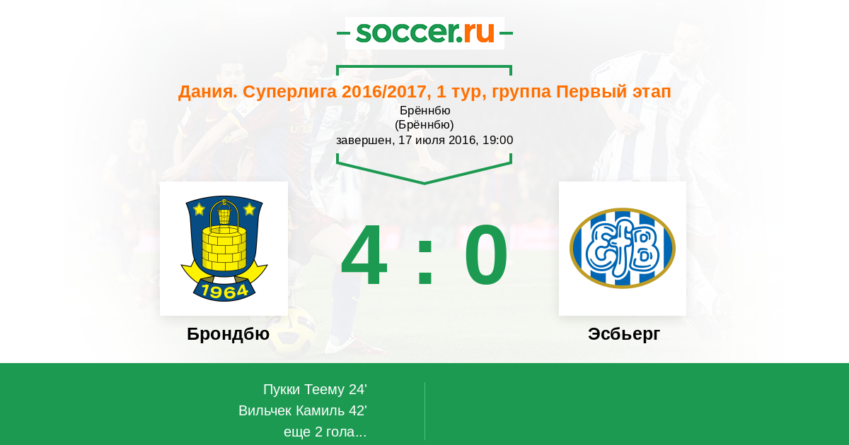 Дания. Суперлига 20.03.2016 Брондбю Логотип футбольный клуб Брондбю (Брённбю) 0:0 Логотип футбольный клуб Эсбьерг Эсбьерг