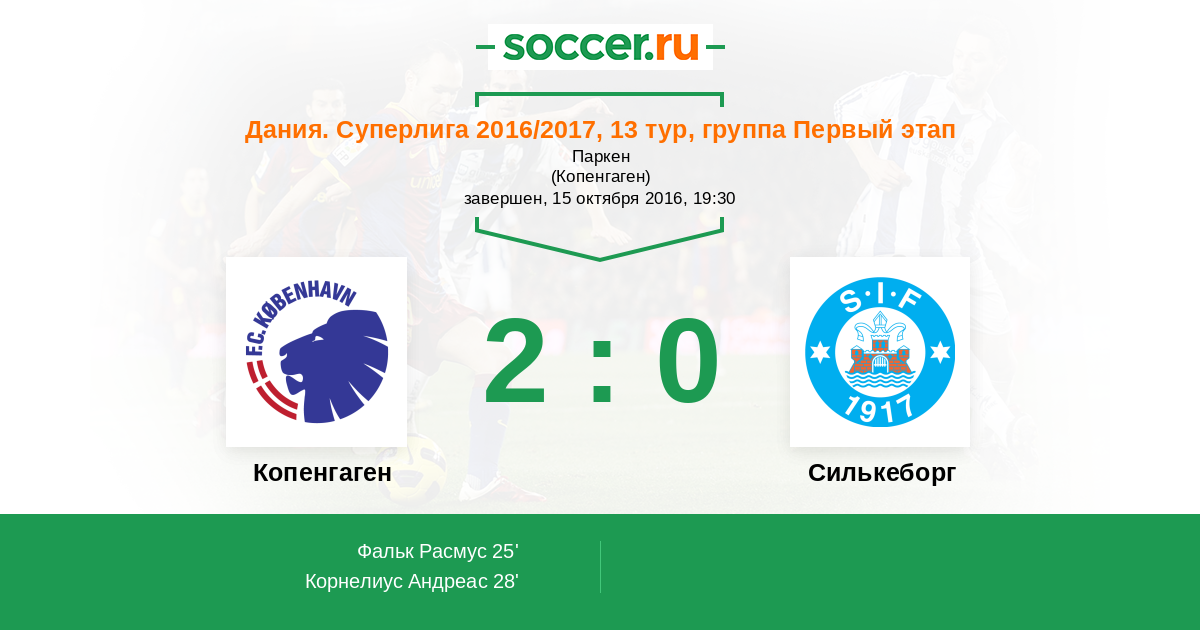 Дания. Суперлига 23.09.2017 Копенгаген Логотип футбольный клуб Копенгаген 4:0 Логотип футбольный клуб Силькеборг Силькеборг