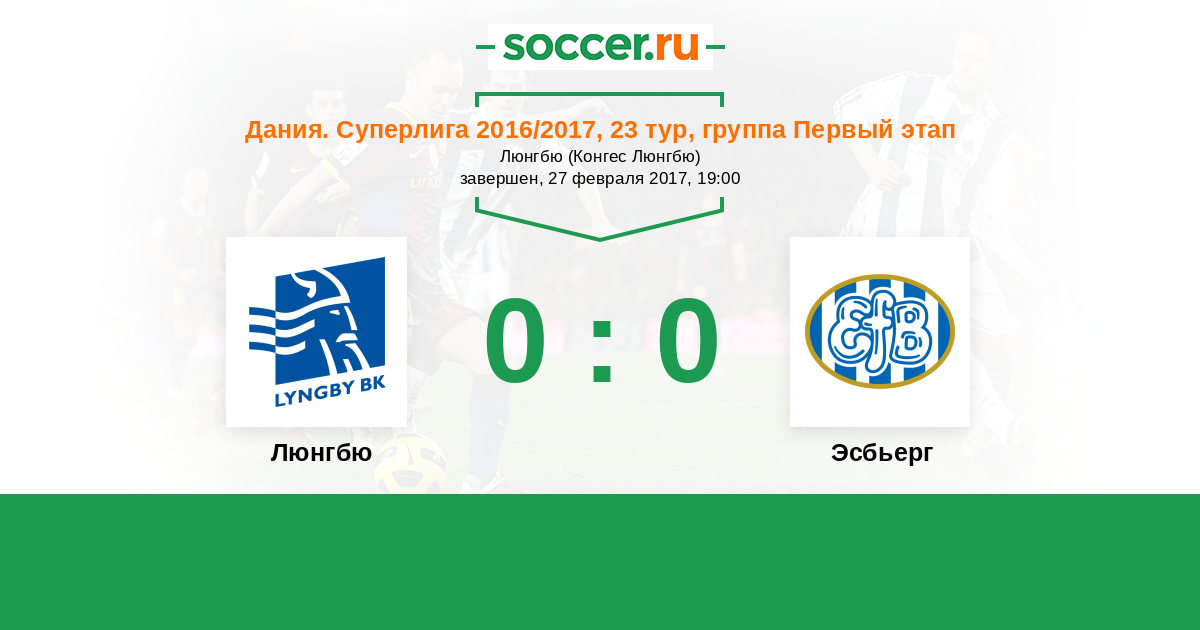 Дания. Суперлига 17.10.2016 Эсбьерг Логотип футбольный клуб Эсбьерг 2:2 Логотип футбольный клуб Люнгбю (Конгес Люнгбю) Люнгбю