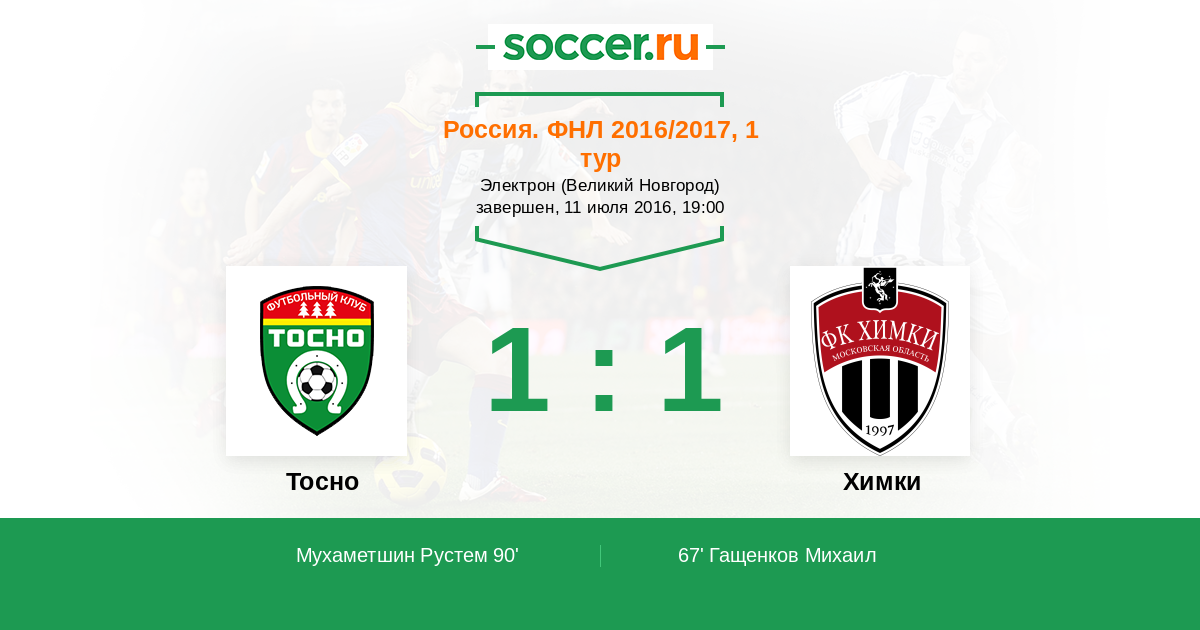 Товарищеские матчи. Клубы 21.06.2017 Тосно Логотип футбольный клуб Тосно 2:2 Логотип футбольный клуб Химки Химки