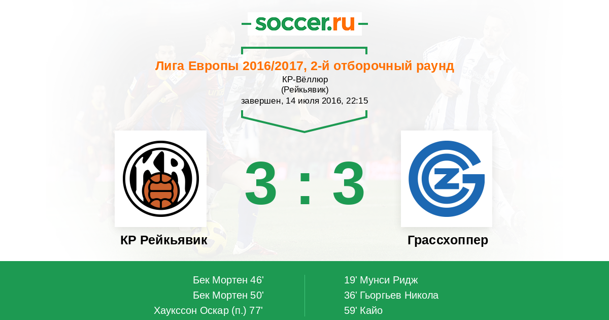 КР Рейкьявик 1:2 0:0 1:2