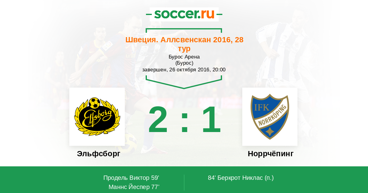 Швеция. Аллсвенскан 01.11.2020 Эльфсборг Логотип футбольный клуб Эльфсборг (Бурос) 2:1 Логотип футбольный клуб Норрчёпинг Норрчёпинг