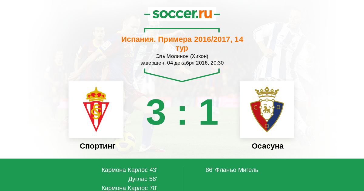 Испания. Сегунда 26.10.2014 Спортинг Логотип футбольный клуб Спортинг (Хихон) 2:0 Логотип футбольный клуб Осасуна (Памплона) Осасуна