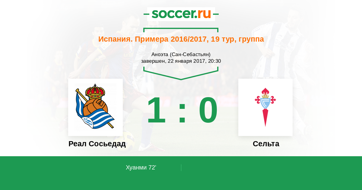 Испания. Примера 19.08.2017 Сельта Логотип футбольный клуб Сельта (Виго) 2:3 Логотип футбольный клуб Реал Сосьедад (Сан-Себастьян) Реал Сосьедад