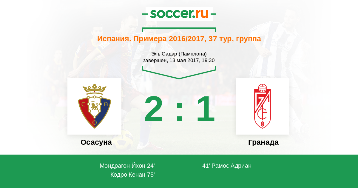 Испания. Примера 18.05.2013 Гранада Логотип футбольный клуб Гранада 3:0 Логотип футбольный клуб Осасуна (Памплона) Осасуна