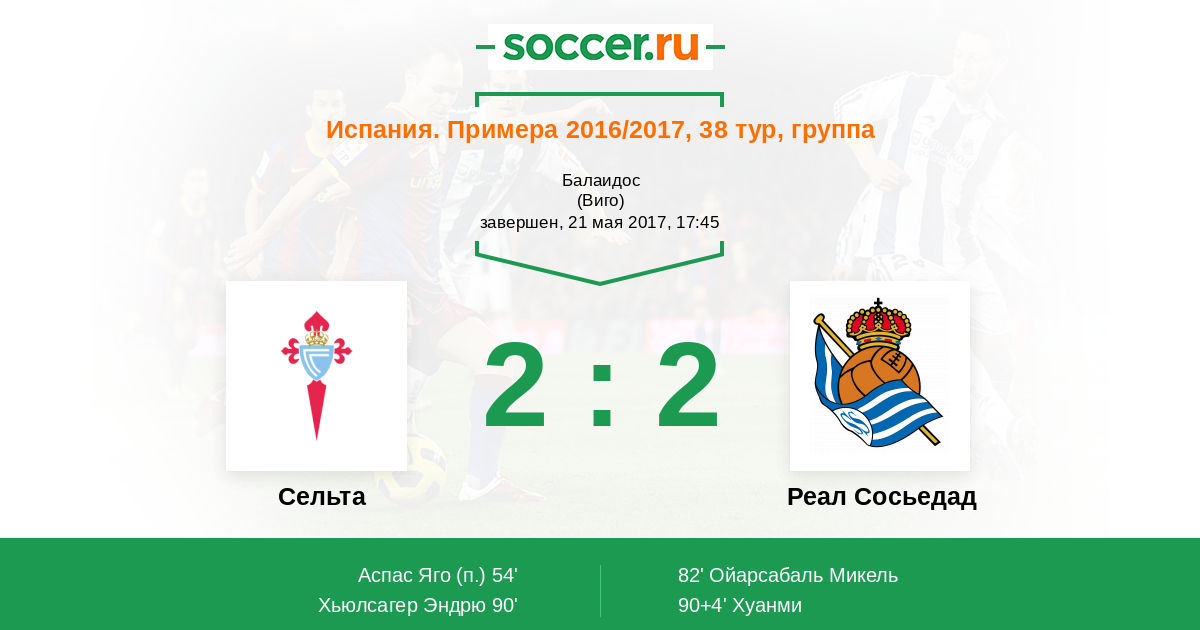 Испания. Примера 19.08.2017 Сельта Логотип футбольный клуб Сельта (Виго) 2:3 Логотип футбольный клуб Реал Сосьедад (Сан-Себастьян) Реал Сосьедад