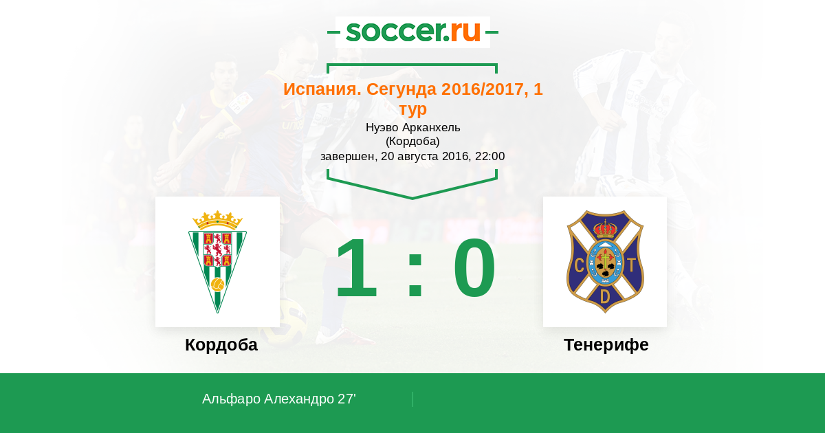 Испания. Сегунда 21.01.2017 Тенерифе Логотип футбольный клуб Тенерифе (Санта-Крус-де-Тенерифе) 2:0 Логотип футбольный клуб Кордоба Кордоба