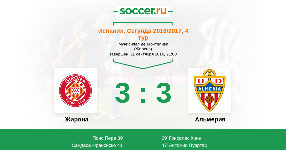 Испания. Сегунда 11.10.2015 Жирона Логотип футбольный клуб Жирона 1:1 Логотип футбольный клуб Альмерия Альмерия