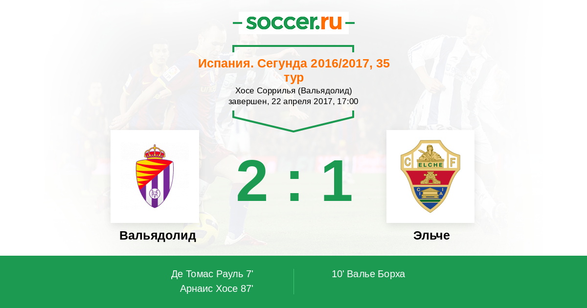 Испания. Сегунда 12.11.2016 Эльче Логотип футбольный клуб Эльче 2:0 Логотип футбольный клуб Вальядолид Вальядолид