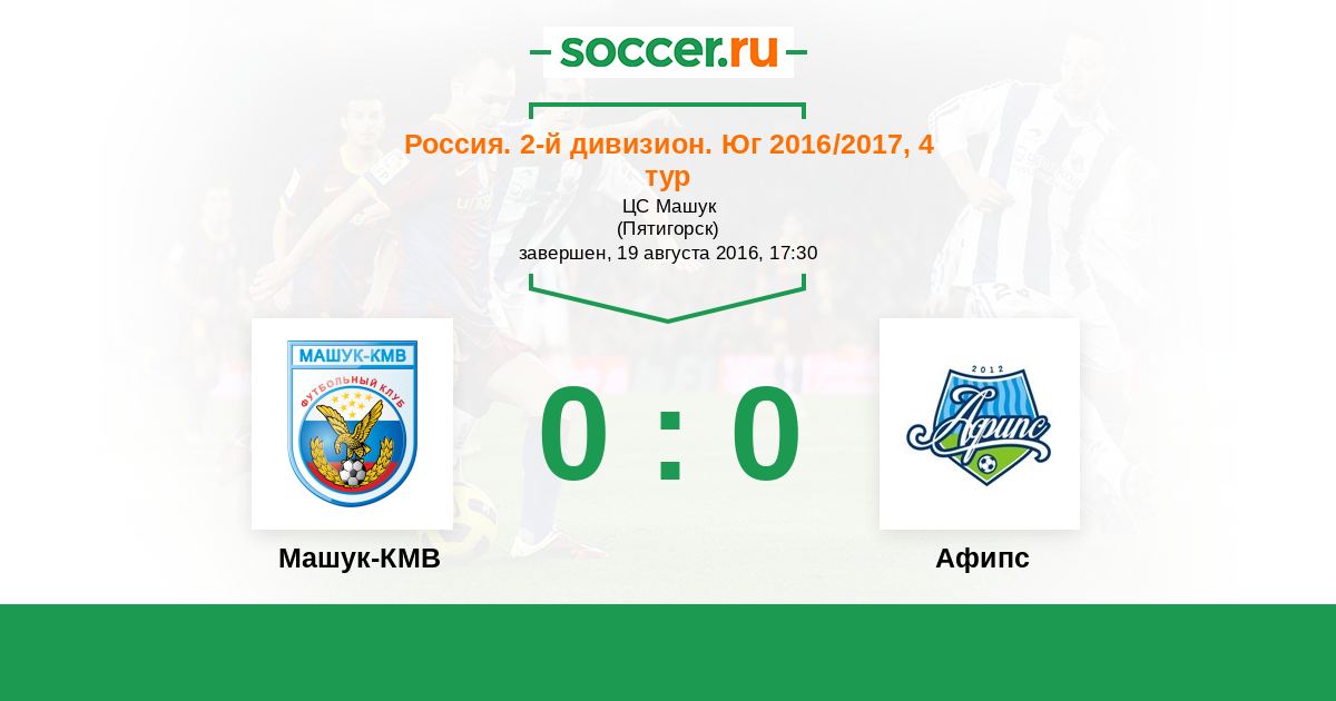 Россия. Вторая лига. Группа 1 14.09.2015 Машук-КМВ Логотип футбольный клуб Машук-КМВ (Пятигорск) 0:1 Логотип футбольный клуб Афипс (Афипский) Афипс