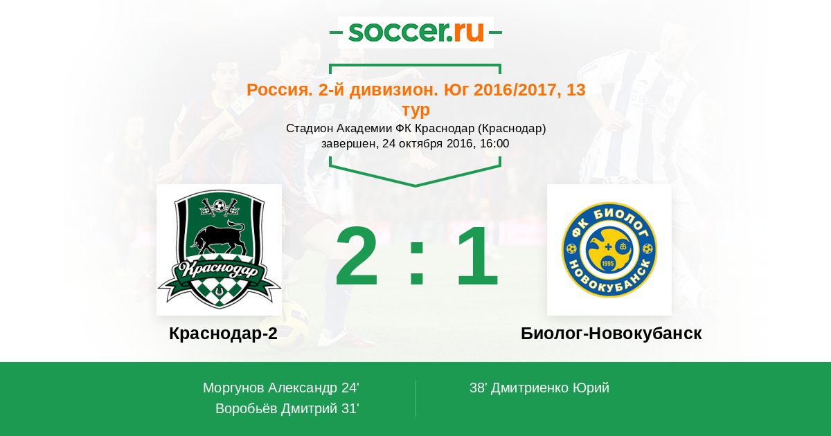Россия. Вторая лига. Группа 1 24.09.2013 Биолог-Новокубанск Логотип футбольный клуб Биолог-Новокубанск 2:1 Логотип футбольный клуб Краснодар-2 Краснодар-2