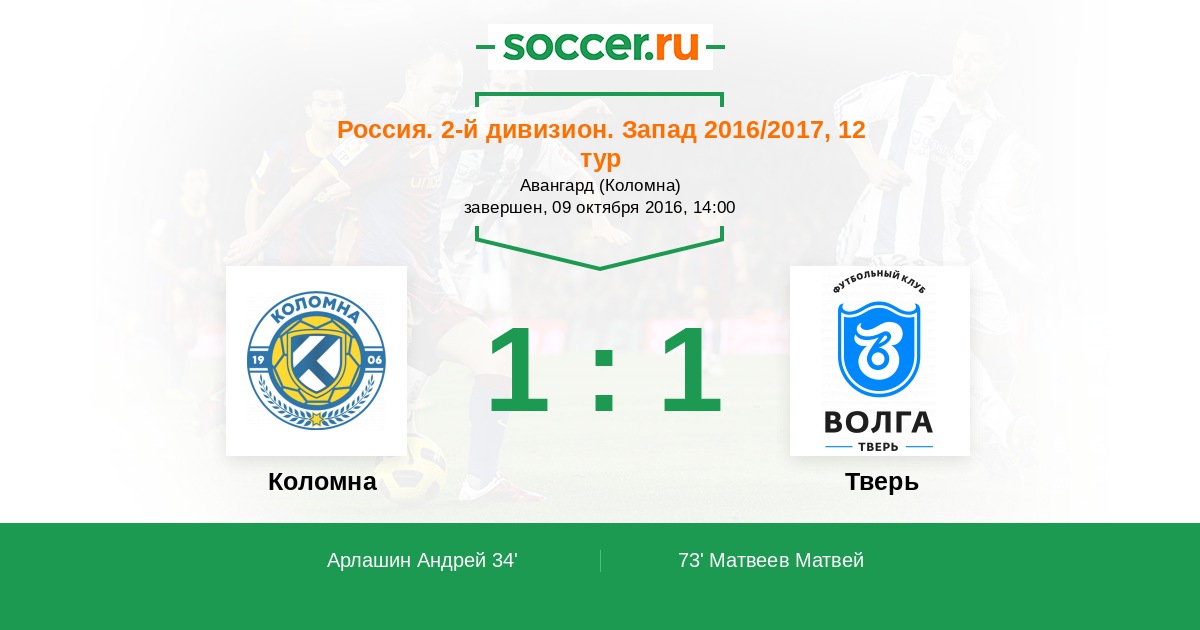 Россия. Вторая лига. Группа 2 05.10.2014 Коломна Логотип футбольный клуб Коломна 3:1 Логотип футбольный клуб Тверь Тверь