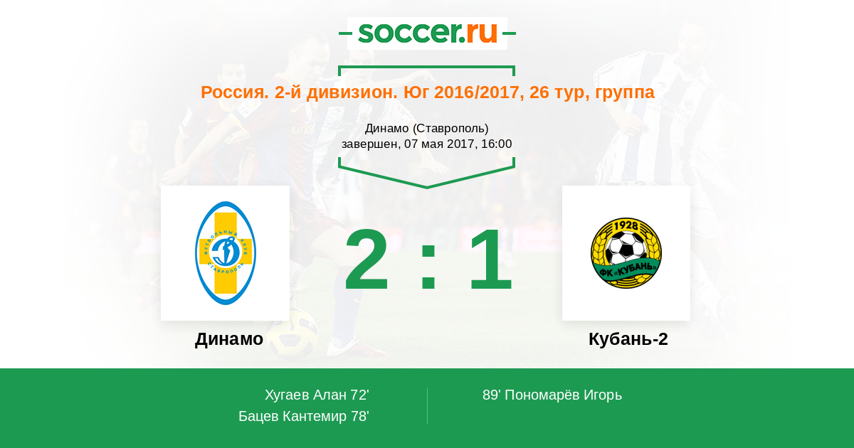 Россия. Вторая лига. Группа 1 21.04.2018 Динамо Ставрополь   1:0 Логотип футбольный клуб Кубань-2 (Краснодар) Кубань-2